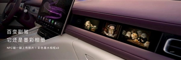 副驾区域的“灵感橱窗”是此次内饰的创新设计,用户可搭配官方磁吸公仔、模型等陈列装饰,也可更换墨彩相册、律动香氛等配件,打造专属的百变副驾空间。
