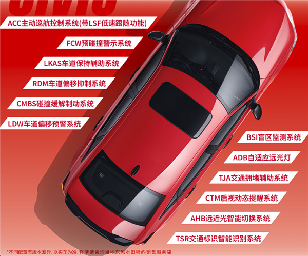 新车使用了思域TYPE R同款前脸造型,采用了时尚动感的拉力红车色,并配备了LED大灯、17英寸铝合金运动轮毂,还搭载运动套件,格栅、外后视镜、门把手、侧裙、后扰流板等均进行了熏黑处理,强化运动视觉效果。