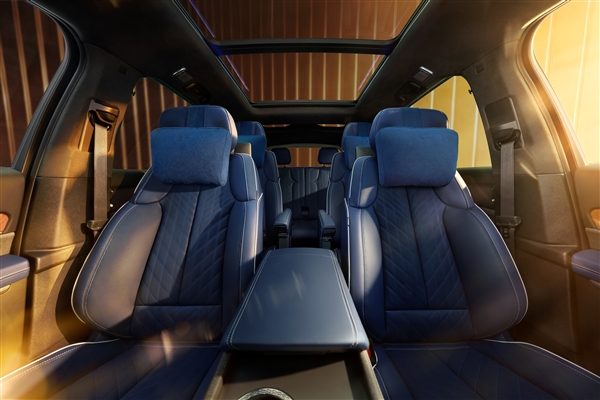 新车采用2+2+2的三排6座空间布局,前排座椅针对中国消费者习惯特调骨架,加宽加厚坐垫、优化靠背贴合度,大幅提升包裹感,配备加热、通风和按摩;二排同样为中国市场专属开发,电动可调宽适座椅搭配独立娱乐屏。