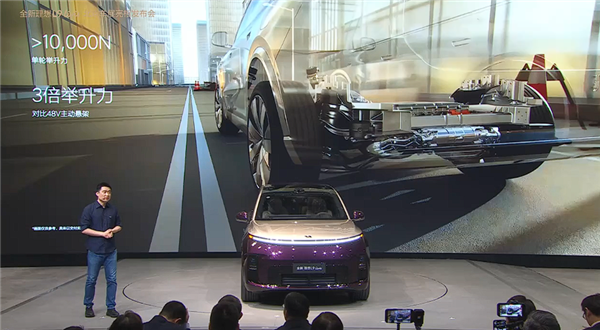 该车定位全尺寸SUV,不过按照李想的定义,它还是运动跑车、豪华轿车和越野车的结合体,之所以如此,就在于全球首发800V主动悬架。