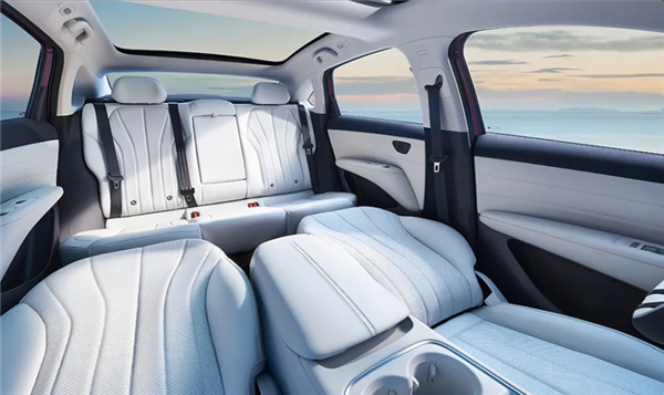 内饰采用极简轻奢设计,大面积软性材质搭配木纹饰板装饰,质感出色,车内布局兼顾实用性与舒适性,前排座椅可组合放平形成大床模式,后排座椅支持118度靠背角度调节。