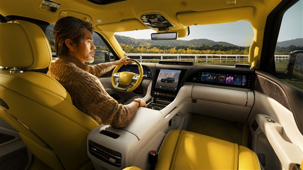 新车增加专属车色墨玉青,漆面加入微米级珠光晶体,在光线变化中呈现丰盈的渐变效果;搭配甲骨文黄金车标与22英寸八孔锻造铝合金轮毂,向外温润如玉,向内则心怀山河。