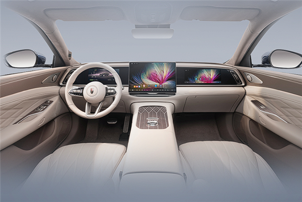 内饰全面换新,一眼看去就是鸿蒙座舱的典型风格,配备全液晶仪表盘、悬浮式中控屏和副驾驶屏,搭配多处细节辅以的木纹饰板、菱形格皮质等,展现科技与豪华感。
