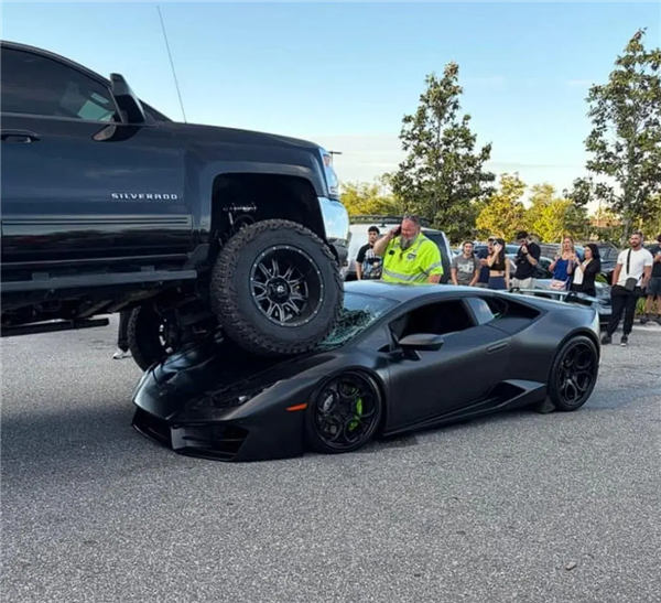 一名女子驾驶改装的高底盘雪佛兰Silverado皮卡,因严重视野盲区未发现前方正在倒车的兰博基尼Huracán,直接碾过这辆价值25万美元的超级跑车,损失或达到10万美元,事故全程被行车记录仪拍下,视频迅速在社交媒体疯传。