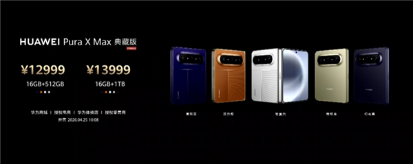 包小可4月25日消息,行业首款横向阔折叠手机华为 Pura X Max 今日上午 10:08 正式开启首售。