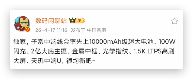 REDMI Note17 Pro Max:10100mAh,续航小钢炮