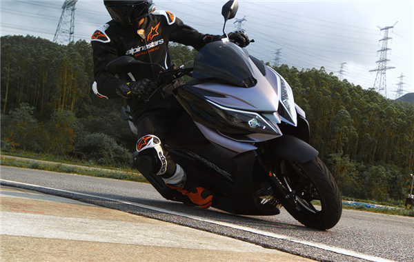 动力方面,150V搭载149cc单缸水冷四气门发动机,压缩比12.5:1,最大功率13.2kW (18马力),峰值扭矩15.5N·m,初段平顺,中后段动力攀升更快,尾速比150X更高,配13L大油箱,理论续航500公里。