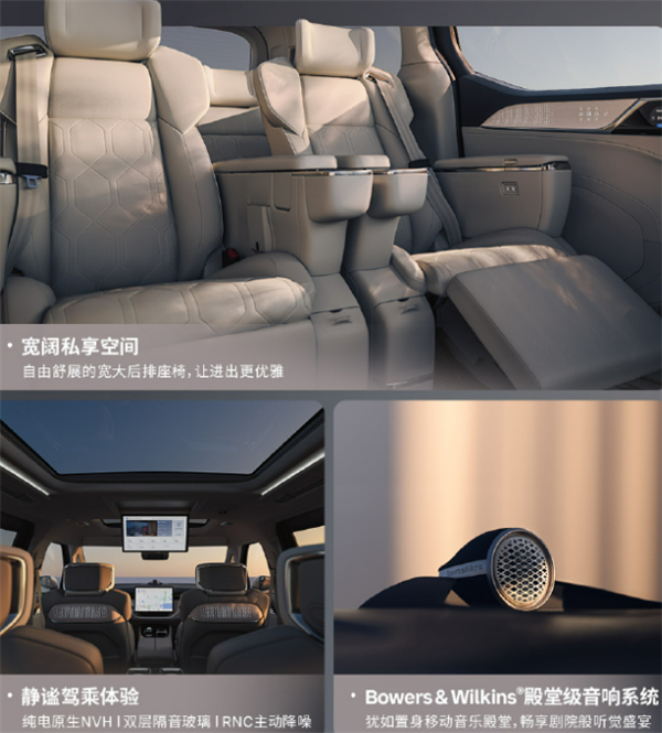同时配备Bowers&Wilkins殿堂级音响,配合全车静谧降噪配置,打造沉浸式影音座舱,整车标配6个安全气囊。