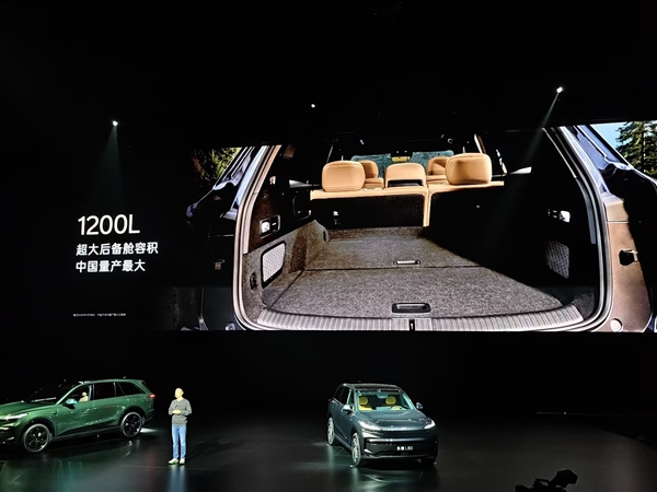 会上,李斌介绍,乐道L80是中国市场装载空间最大的五座SUV,后备箱容积高达1200L,为中国量产车最大。