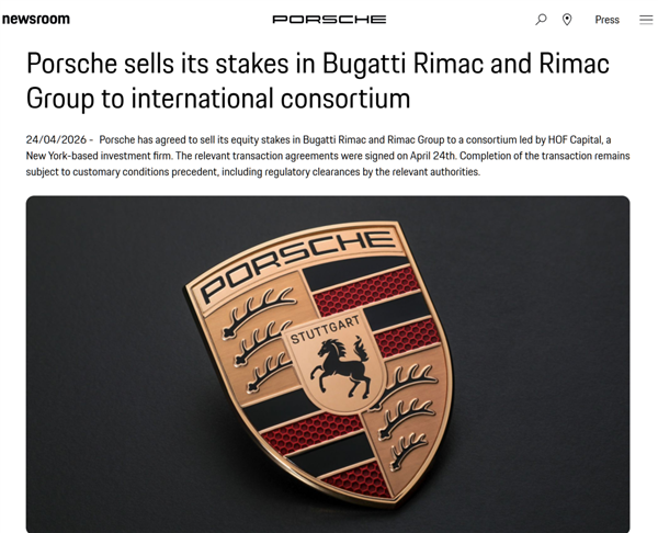 这回卖掉布加迪 Rimac 合资公司的股权,背后很大概率也是因为财务的原因。