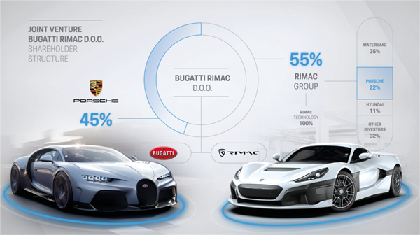 布加迪这个品牌有着两个拥有者:Rimac 和保时捷,而保时捷是大众的一部分,所以布加迪也部分属于大众。