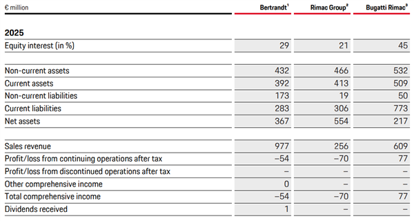 毕竟从资产的角度看,布加迪 Rimac 对于保时捷来说其实算不上优质。2025 年,综合保时捷在合资公司和 Rimac 集团的股权,哥们从 Rimac 跟布加迪这档子事里,一共只能获得 2100 万欧元左右的盈利。