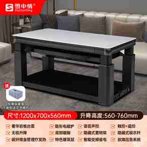 - 雪中情电暖桌(长方形,多功能):1.25博尼斯灰+隐形电磁炉+声控+暖脚+防烫植绒 京东链接 价格:¥1869