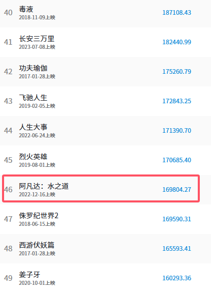 参考目前的增长势头以及票房预测,其最终票房可能超越《阿凡达2》在国内创下的16.98亿元票房。