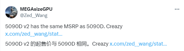 随着发布日期的临近,硬件爆料者MEGAsizeGPU透露,减配之后的RTX 5090D v2,官方建议零售价与此前的RTX 5090保持相同。