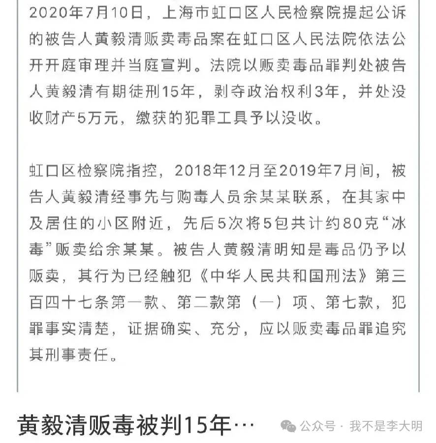 的是,黄芊玲的生父黄毅清因为贩毒被判 15 年,