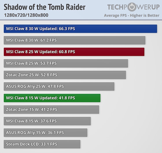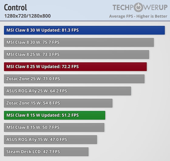 电脑知识网8月15日消息,在AMD锐龙Z2 Extreme掌机逐渐进入市场之际,Intel似乎隐藏了一张王牌,直到现在才揭晓,根据TechPowerUp最新测试,更新后微星Claw 8 AI+的游戏性能最高可提升30%。