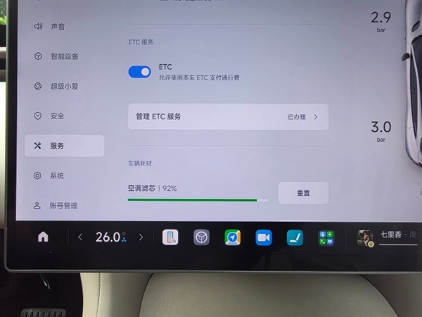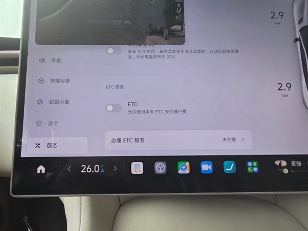 车主在中控屏下方找到“设置”按钮,点进去选“服务”-“办理ETC服务”,会跳出二维码。