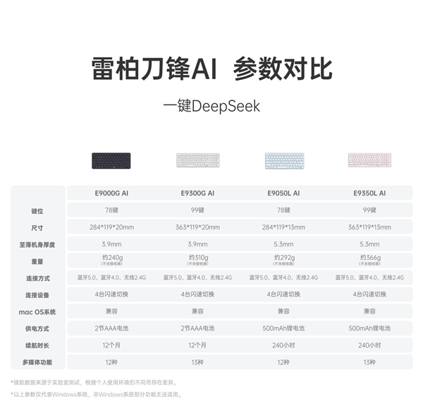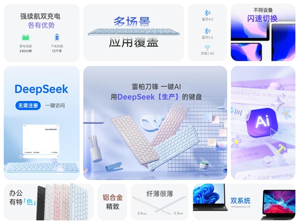 AI深度赋能雷柏E9350L AI多模无线刀锋键盘,一键即问的智慧,打造用户与办公产品之间“需求直达”的交互模式,让键盘不仅仅只是工具,而是真正懂你的“效率助手”,将智慧办公的高效落实到日常应用中。