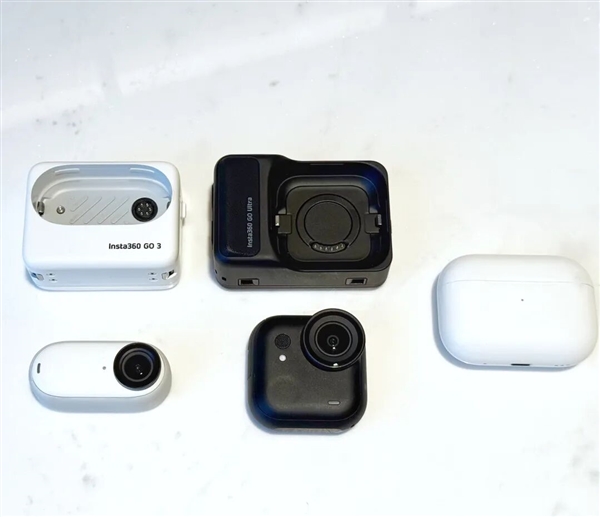 从左到右:Insta360 GO3、GO Ultra、AirPods Pro2 | 来源:极客公园
