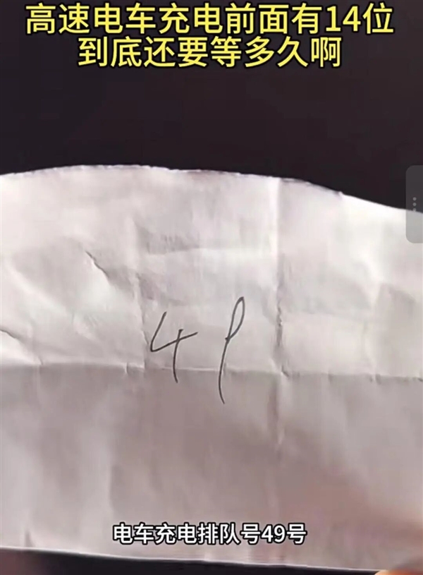 一位从广州出发回湖北老家的女士向媒体讲述,当他们到达湖南一服务区时,新能源车充电排队已经叫到49号了。