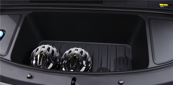轻叩两下车标的区域,前机盖就会弹开,这个车外便捷开启的方式,就决定了这是一个日常可用的前备箱。前备箱放在车内电控开启的,有一个算一个,根本就没人会用,操作链路太繁琐了。