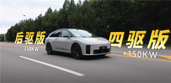 i6 也是理想第一台提供后驱版的车型,后驱版配备一个 250kW 的后电机,四驱版多了一个 150kW 的前电机。