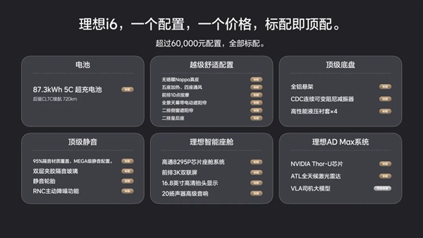 i6 最大的提升就是,保持 i8 优秀长板的基础上,解决了储物空间的短板,另外在 SKU 上,理想也吸取了教训,24.98 万元直接把所有东西都给到你,省的在版本之间纠结了。