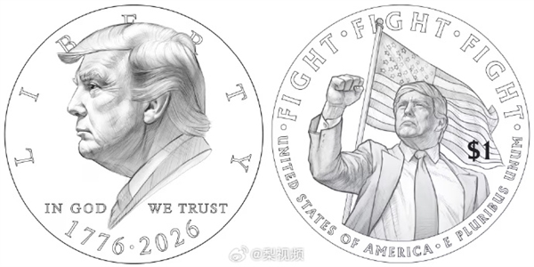 负责监督美国造币厂的财政部官员布兰登·比奇证实,特朗普纪念硬币草案“真实存在”。根据草案,硬币的一面刻有特朗普的侧面头像与1776至2026年(美国建国250周年)标识。
