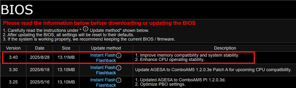@ ShendonZ在第一颗锐龙7 9800X3D烧毁之后,就给主板刷了5月份的3.25版本BIOS,但依旧无济于事。华擎此前声称这个问题是PBO造成的,该版BIOS从根本上解决了问题。