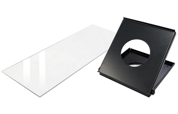 支架本体为铁质,黑色,镜面材质则是亚克力,厚度2毫米,长度280毫米,宽度110毫米。