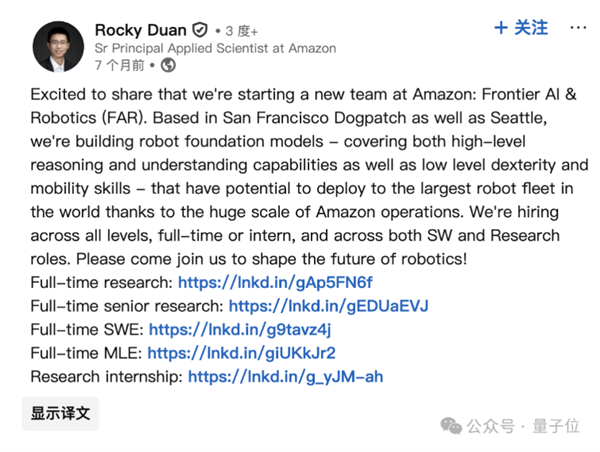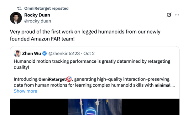 目前,由Rocky Duan担任Amazon FAR研究负责人。