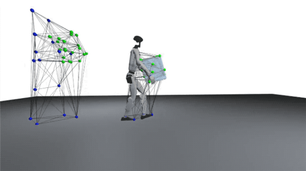 通过收缩或拉伸该网格,研究可以在保持相对空间结构和接触关系的前提下,将人类动作映射到机器人上。