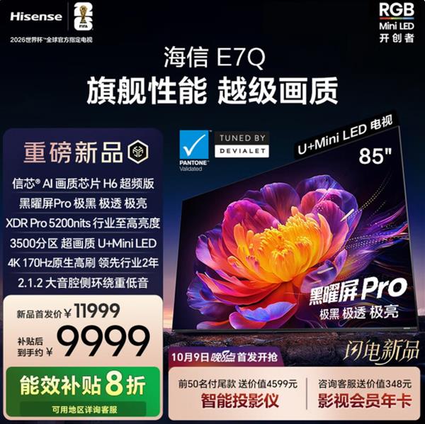 如果近期想入手一台高配好价的Mini LED电视,就不得不提9月26日发布的海信E7Q!这款被数码博主@蓝大仙人 称为“旗舰杀手”的电视,配置堆得离谱,价格却瞄准次旗舰,未发布就拉满期待值!