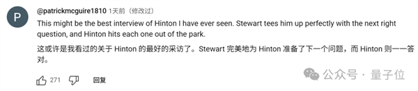 有看完节目的网友赞叹道,“这可能是目前看到的Hinton最好的采访”。