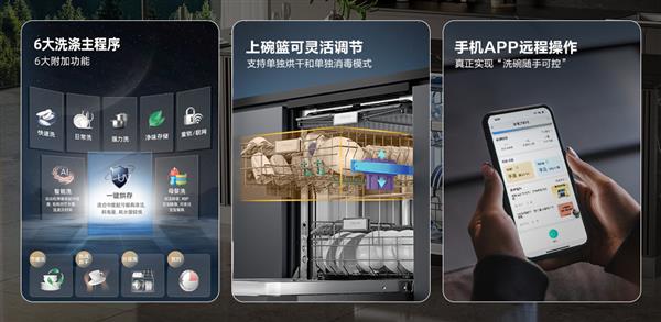 此外,海信零菌洗碗机大薄荷系列C507iPro上碗篮可灵活调节,下层空间可提升25%,大件餐具轻松放入,避免因空间限制而降低清洗效率。同时,它还支持单独烘干和单独消毒模式,无论是快速干燥还是额外杀菌,都能按需操作,确保餐具从洗涤到存放全程无菌。更便利的是,用户可通过手机APP远程操作,随时掌控洗碗进程,真正实现“洗碗随手可控”。对于刚接触洗碗机的小白用户,这套智能系统也易上手,无需繁琐操作,即可享受专业级清洁体验。