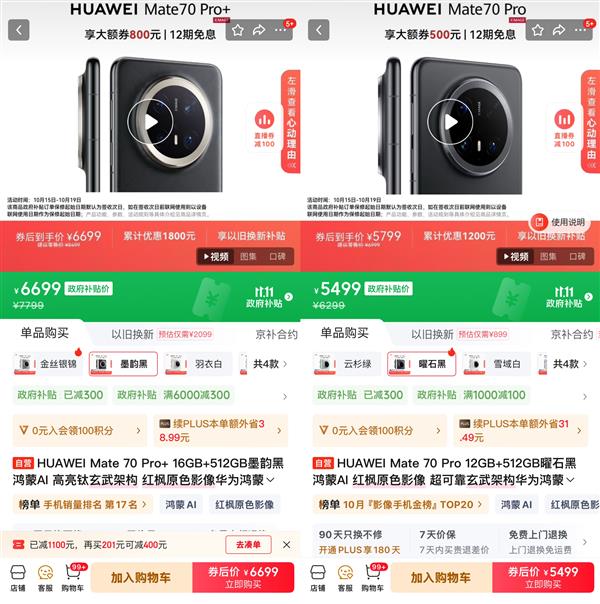 10月15日起华为爆品全面降价 京东11.11购Mate 70 Pro+到手价6699元