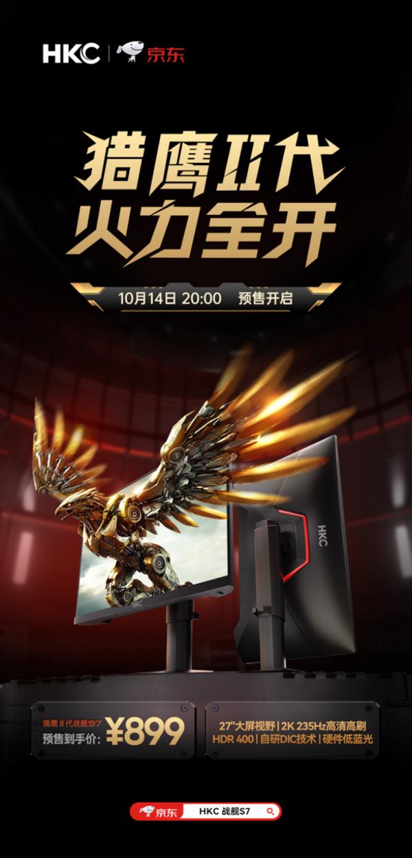 从配置来看,27 英寸、2K 分辨率、235Hz刷新率、HDR400认证、升降旋转支架等这样的组合,放在以往往往是“千元级往上”的价位段。而HKC战舰 S7显示器直接将售价定在899元,无疑为消费者带来了不小惊喜。对于预算有限但又希望体验2K高刷电竞显示器的用户来说,战舰S7无疑是当前市场中最值得入手的选择之一。产品现已开启预售,感兴趣的用户可到电商平台了解更多信息。