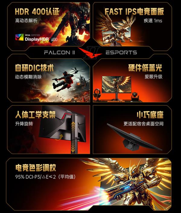 此外,战舰S7对于色彩表现上也下足了功夫。其拥有95% DCI-P3广色域覆盖,能够呈现更丰富、更准确的色彩。同时,显示器还通过了△E≤2的专业色彩校准,确保色彩还原的准确性,无论是图像处理、视频剪辑还是设计工作,都能提供可靠的色彩参考。并且还通过VESA DisplayHDR 400认证,能够在支持HDR的游戏和影视内容中展现更真实的光影效果。无论是游戏中爆炸的火焰,还是电影中夕阳下的剪影,都能在战舰S7上得到生动还原,进一步提升沉浸感。