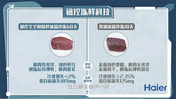 在保障空间与秩序的基础上,海尔麦浪冰箱搭载唯一“国奖级”磁控全空间保鲜®科技,守护年轻用户三餐的新鲜。该项科技由海尔冰箱与中科院历时5年联合研发,已申请204项发明专利,从本质上破解了“鲜味易流失”的难题。在央视频极限囤鲜挑战中,熊猫笋、牦牛肉、鱼子酱、雅鱼等娇贵食材在储存7天后仍保持接近初始状态。具体来看,该科技通过稳态弱磁场主动分解食材内部水分子团簇,从细胞层面抑制大冰晶生成,可实现“冻鱼60天,海里一样鲜”。