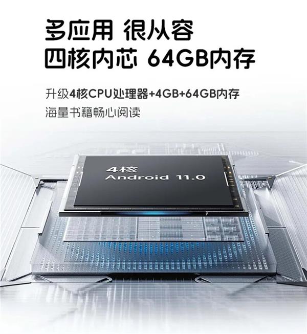 小Q MAX 8R1基于Android 11系统,兼容更多第三方阅读应用,内置系统级适配的京东读书APP,一键畅享60万+精选电子书。支持冷暖双前光自由调节,从晨读到夜读皆宜;新增PDF文档重排功能,原版与重排可自由切换;兼容TXT、PDF、EPUB、MOBI、DOCX等二十余种格式,完整还原排版。全新升级的人声阅读系统内置1.5W大振幅扬声器,音质纯净细腻,搭配多款AI人声朗读,带来更生动的听书体验。