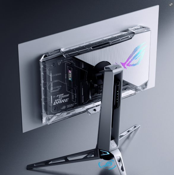 外观上,新款显示器采用赛博美学风格设计,配备独特的半透明后盖,搭配镂空设计底座,未来感十足。