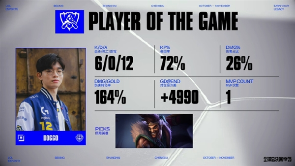 据了解,在今天的比赛中,CFO选手Doggo使用德莱文超神发挥,全场零失误,极致个人秀碾压T1。