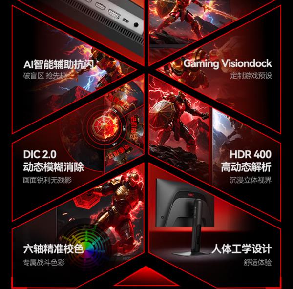 值得一提的是,为了让玩家们能够在激烈的比赛中脱颖而出,UG25HF集成了多项实用的游戏辅助功能,其中包括DIC 2.0动态模糊消除技术、AI智能辅助抗闪功能以及Gaming Visiondock调节软件等。DIC 2.0技术来自HKC自研,显示器通过对运动物体边缘进行智能增强处理,显著减少了动态模糊带来的干扰,提高了画面清晰度;而AI智能辅助抗闪覆盖闪光弹全周期,从闪光弹爆发瞬间到闪光弹消散,智能降低闪光弹造成的画面干扰以及快速“破白”,为竞技玩家创造反应时间优势。此外,新升级的Gaming Visiondock桌面控制软件,支持对屏幕显示、性能设置、辅助功能等十余项核心参数进行调试,自由定制专属情景模式预设。鼠标便捷控制,帮助玩家快速找到最适合自己的显示方案。