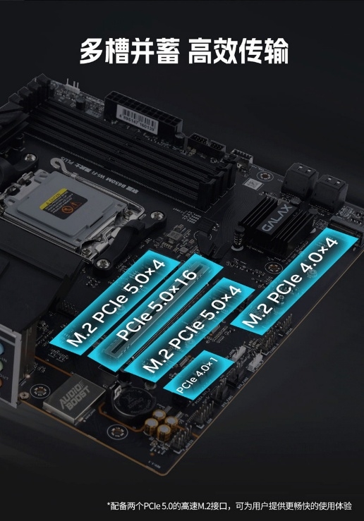 内存上支持4条DIMM DDR5内存插槽,最高支持7600+MT/s超频频率,配合AMD EXPO技术,轻松解锁内存潜力,为系统多任务、高帧率游戏提供充足带宽。