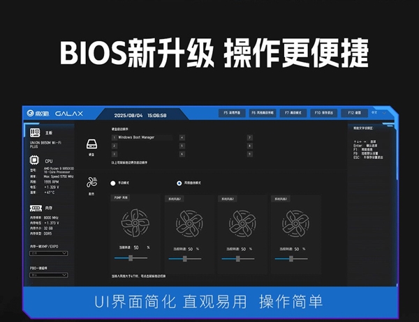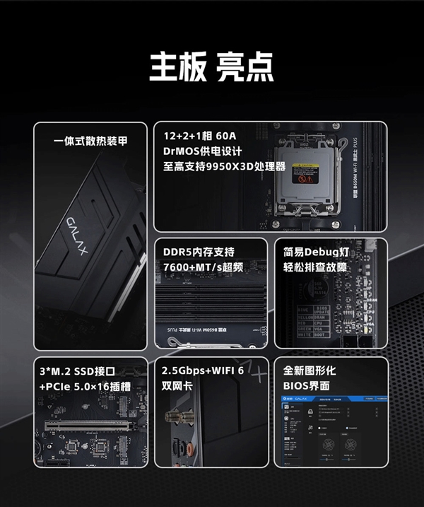 整体来看,影驰联盟 B650M Wi-Fi 黑武士 PLUS 主板在颜值、供电、拓展性、性能潜力以及易用性上都十分全面,满足AMD玩家们的性能、扩展与体验的多重需求!无论是硬核游戏玩家打造主力机,还是内容创作者搭建生产力平台,它都能成为可靠的装机选择!