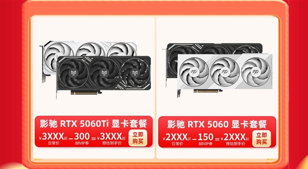 影驰 RTX 5060 金属大师 V2 OC系列显卡,搭载8GB GDDR7显存,畅享1080P高帧游戏体验,全金属散热外壳保障稳定运行,活动价2741元起;影驰 RTX 5060 Ti 金属大师 MAX OC系列显卡,搭载16GB GDDR7显存,轻松驾驭2K分辨率游戏,活动价仅需3985元起;