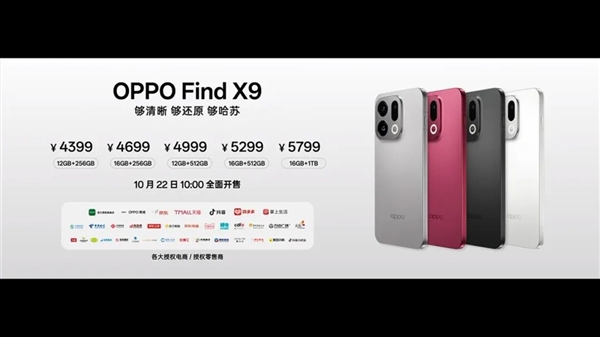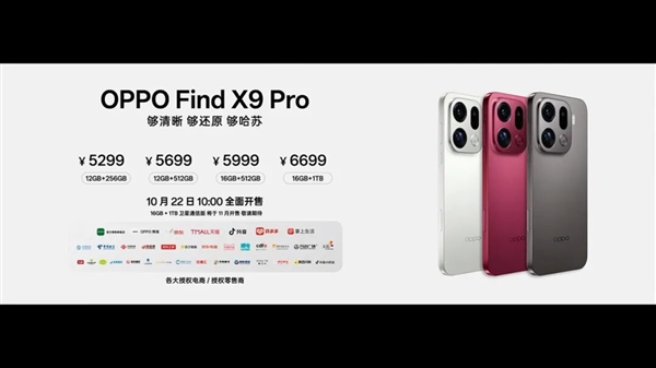 那么价格方面, Find X9 ( 12G + 256G )起售价 4399 元,Find X9 Pro ( 12G + 256G )起售价 5299 元,跟隔壁 vivo 的 X300 系列仍然保持了心有灵犀的一致,都比小米便宜了 100 块。