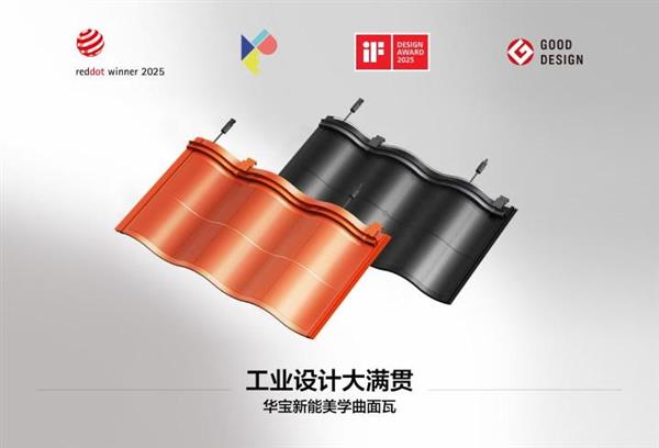 刷新纪录 华宝新能美学曲面光伏瓦集齐全球设计四大奖 解锁“大满贯”!