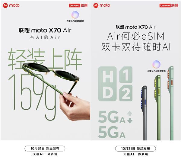 同时,联想moto近期官宣将会在10月31日发布全新的超轻薄新品——联想moto X70 Air,159g的超轻重量甚至优于采用eSIM设计的iPhone17 Air。同时,联想moto X70 Air保留双卡双待设计,搭载天禧个人超级智能体。其他产品信息尚有悬念,但在前沿形态上拥有深厚技术储备的联想moto,想必不会让我们失望。